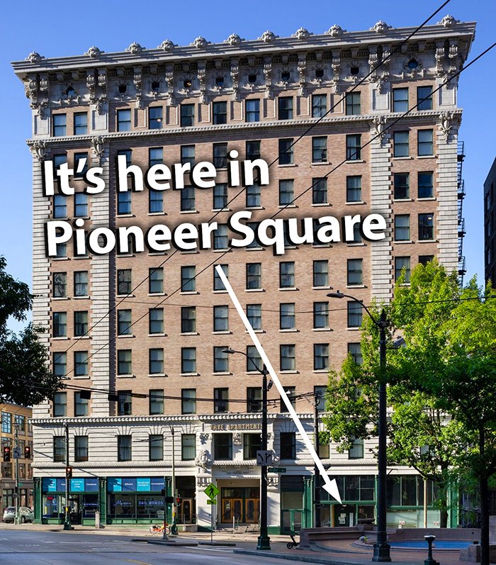 Arrow points to 217 Yesler Way. Frye Apartments is 223 Yesler Way.